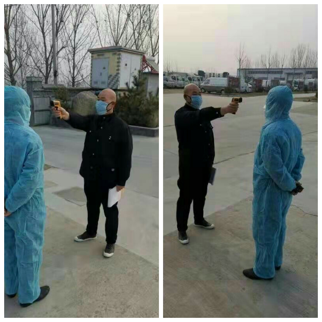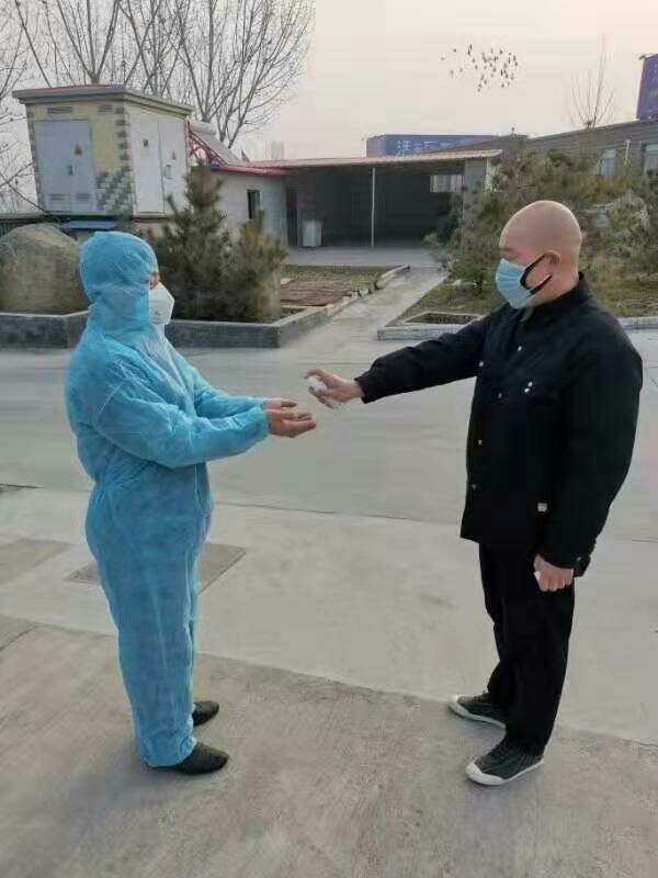 六點多,他到達廠區(qū)的第一件事就是換好防護服,測量體溫,并填寫登記表。